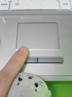 左指で左の四角ボタンを押しながら、右指をタッチパッド上で動かしてます。