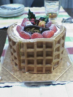 ワッフル専門店?で買ったので周りにワッフルがついてます。